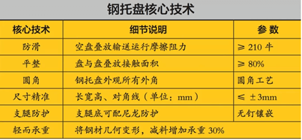 通過生產(chǎn)環(huán)節(jié)對鋼托盤表面處理工藝,有效的對鋼托盤進(jìn)行了防滑處理,真正解決了大量空托盤在自動化立體庫輸送中,因表面光滑導(dǎo)致空盤碼垛運(yùn)行的錯位問題。